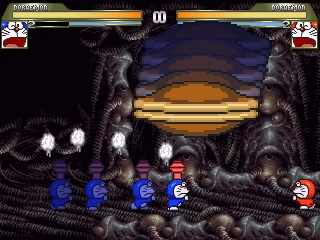 后来与三点打MUGEN,两MINI人物表现出色:MINIDORA和SIMON。MD的有趣配音和搞笑超杀让我们笑声不断(升龙拳判定不错!)SIMON的超杀更是爆笑,有一回对手被三点KO到天上,同时我扔个石头,对手尸体落下时将好掉在石头上,德拉克拉出现……我们早已笑倒,一阵火光,死机:(真是MINI精品了!!!
