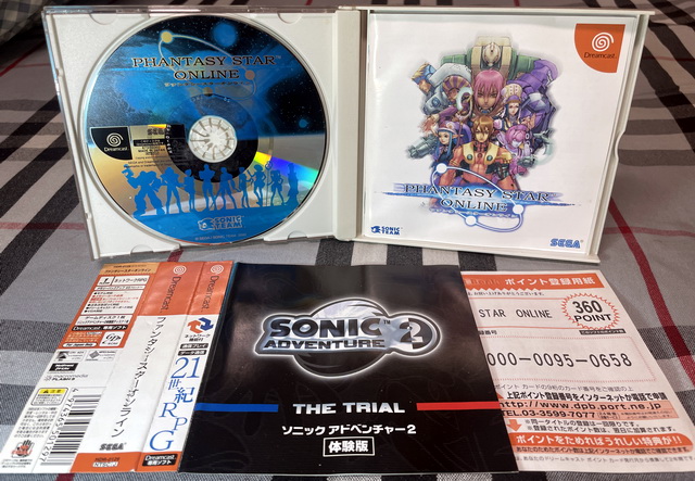 回家了,开机!!!放盘!!!一种正版才有的读盘声……自动进入游戏,SEGA!……定住了!?!DC发出了马达声:(KAO!!Z版啊老兄!!试了SONIC2也不行,甚至DEKA2也!!!才想起电软上小天天的DC要用D版热机才可玩Z(KAO),于是乎,进入狼印暴打几局(现在发现狼印真好玩:),再放PSO……