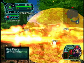 现在终于知道魔法在PSO的重要了,一个高级火魔法一次可以K一大群,B爽!!!可惜猎人TP太少:(现在好羡慕CLASS12:>的异能者啊:)可是没人玩:(PSO B机在望!!(不过B了还有HARD和VERY HARD,还有Ver2可玩:)这样OFFLINE打Lv50不成问题吧:)ARPG的好就在于不用无聊练级,可用技术弥补能力不足。PSO根本不用刻意练Lv,动作功底要好:)如果现在还不会3连击估计早死N次了:)PSO如果硬拼比恶魔城死得还快:)眼馋NGC1·2章:)(最近的FF水晶编年史也是A·RPG!!NGC2008购入决定:)