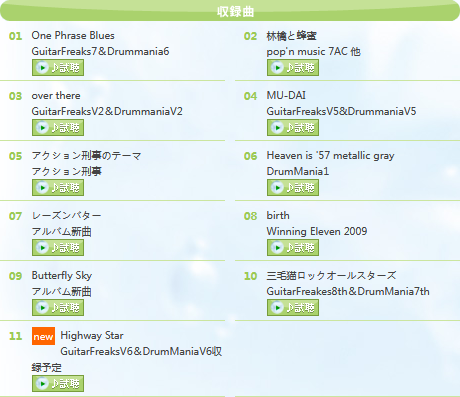 BEMANI人気楽曲はもちろん、Winning Eleven 2009、アクション刑事などサントラ未発表曲やアルバム書き下ろし新曲、さらに稼働前のギタドラ最新作V6に収録予定の新曲まで、小野秀幸の魅力を11曲に凝縮した贅沢な1枚!