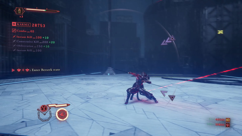接着,从个人体验而言,关于精防的各种设定都很别扭。忍龙一直都是一款大部分时间防御键不松手的游戏,这一点和“受到攻击直前按下防御键可触发精防”的操作就是有冲突的,为此玩家必须要先松再按,本身就进一步限制了反应时间。这个系统就像专门为BOSS战而设计,毕竟一对一的时候可以集中精力去判断精防的时机,但杂兵战想要指望精防我感觉对于绝大部分玩家而言都不太现实,尤其是高难度下如此高的伤害,其风险完全支撑不了带来的收益,打个比方就像街霸6连职业选手都经常反应不了迸放一样。此外,精防成功之后反击的受付窗口很短,有的时候偶然触发后根本来不及去反应按反击,更别说完美反击了。