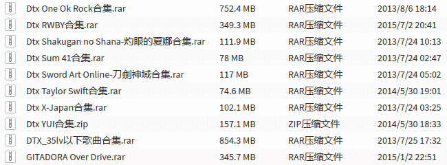 这次之所以容量增加了那么多,一方面是之前提到的未整理谱面和XG年代可以分享的谱面终于全部归档完毕(光后者容量就非常可观),另一方面就是我一不做二不休把所有目前能找到的资源整合包全部整理了,包括: