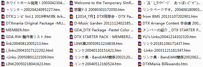 在根目录的Old GDA DTX Site Link Collection中,保存了200多名谱面作者的友情链接页面,绝大部分信息是在搜索引擎中完全找不到的。这中间必然还有相当一部分未被本大包收录的作者,其主页中也仍旧存在可下载资源的微弱可能性,但这需要大规模的信息处理和逐一确认,期待有志者能完成这一伟业!!