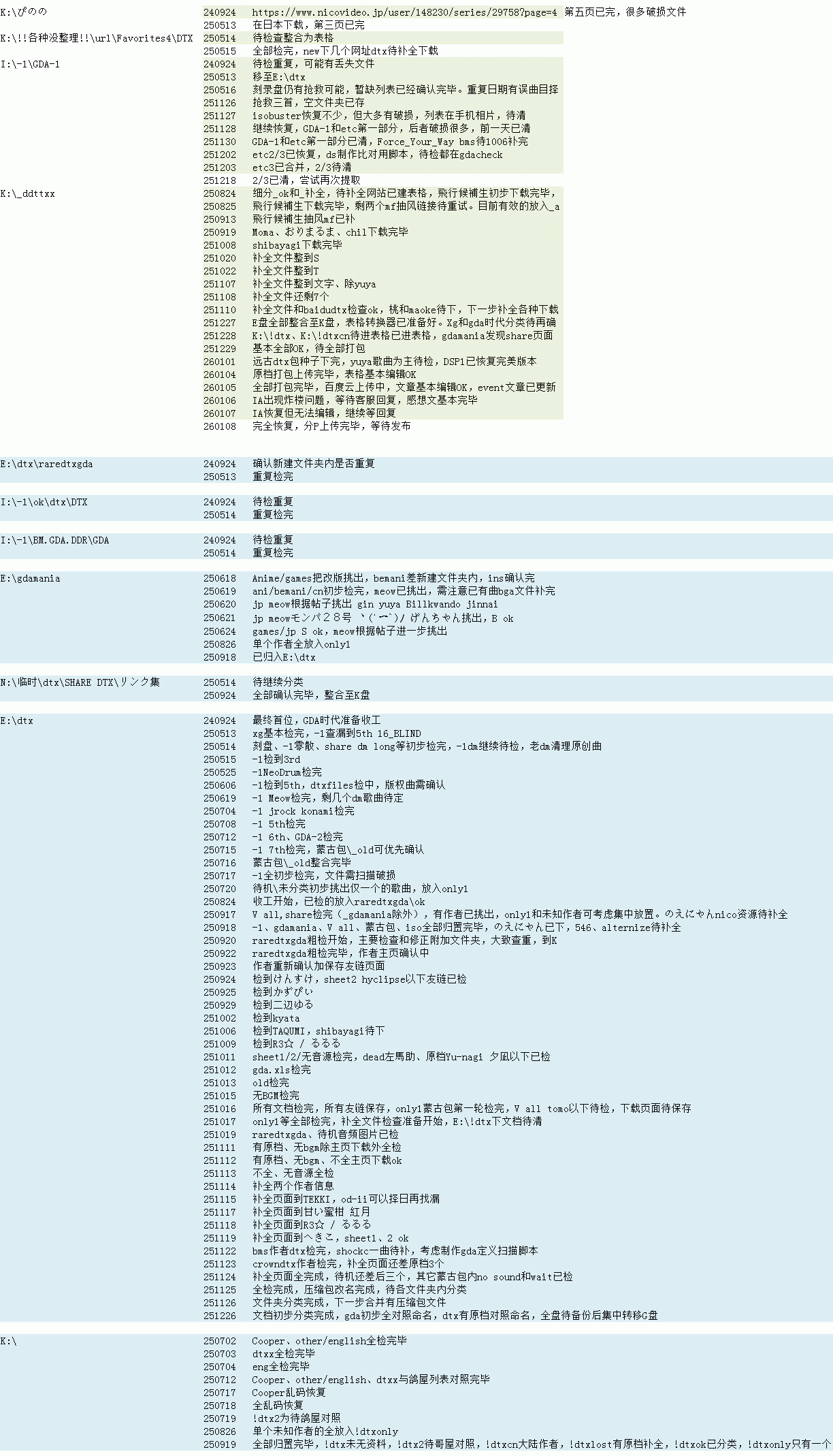 在根目录的Old GDA DTX Site Link Collection中,保存了200多名谱面作者的友情链接页面,绝大部分信息是在搜索引擎中完全找不到的。这中间必然还有相当一部分未被本大包收录的作者,其主页中也仍旧存在可下载资源的微弱可能性,但这需要大规模的信息处理和逐一确认,期待有志者能完成这一伟业!!