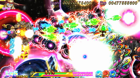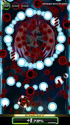 这个算是本次又一个重量级的奇葩,号称音游+STG,但实际上音游在里面的比重微乎其微,冲着音游去投币就会像我一样:不是打了三首歌,是被透了三首歌-__,-|||感觉不实际玩根本体会不到那种受罪,简单地说把STG和音游的背版成分无限放大,就是这款游戏了。甚至游戏里面还有完全没引入音游系统的机体,一样能打,更说明音游成分在游戏中的尴尬地位。