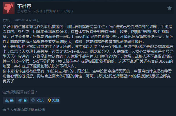 其实很多财宝系的动作游戏都有类似的设计方法,即如何找到突破点破解看似完全无理的局面,达到“敌赖我更赖”的局面,然而这种游戏设计思维对于现在连恶魔城落地取消都懒得琢磨的新世代玩家而言可能有点太过于苛刻了(参考资料:血污、恶魔城底下无数的“操作太僵硬了”评论),于是你就有会在Steam评价区中看到某些锐评,总游戏时间几十小时就像没玩过一样。没投入时间和精力就锐评,这是主观态度问题,这没什么因为博主对于不喜欢的游戏就属于这种:我凭本事飞的盘,难道还不让说话了,你不听就是了-__,-+但若明明投入了时间和精力,却根本没玩懂游戏,还要不懂装懂、硬输出观点去误人子弟,这就是游戏理解问题,这种情况下就要好好审视一下自己到底算不算个称职的玩家了。