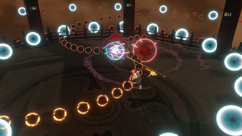 游戏最关键的优点就是操作,算是有限制地还原了落地取消。和恶魔城不一样,主角若在落地中离地面很近的时候攻击,将无法进行落地取消,而不同种的武器其具体的时间窗口还不同,比如长枪类基本一小跳就要出刀才能落地取消,短刀类则可以稍晚一点。这种规则的限制不如恶魔城自由,但是也确实从另一种角度加大了各种武器在操作层面和实战层面的差异性,同时也没有过度影响战斗流畅性。